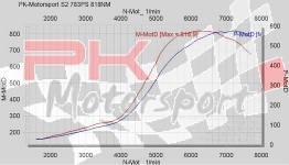 Hier eine kleine Übersicht unserer Dyno Leistungsdiagramme. Als Beispiel ein Audi S2 mit 783PS und 818NM inkl. Garantie und Strassenzulassung.